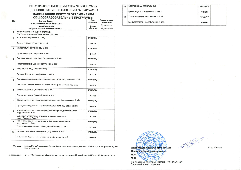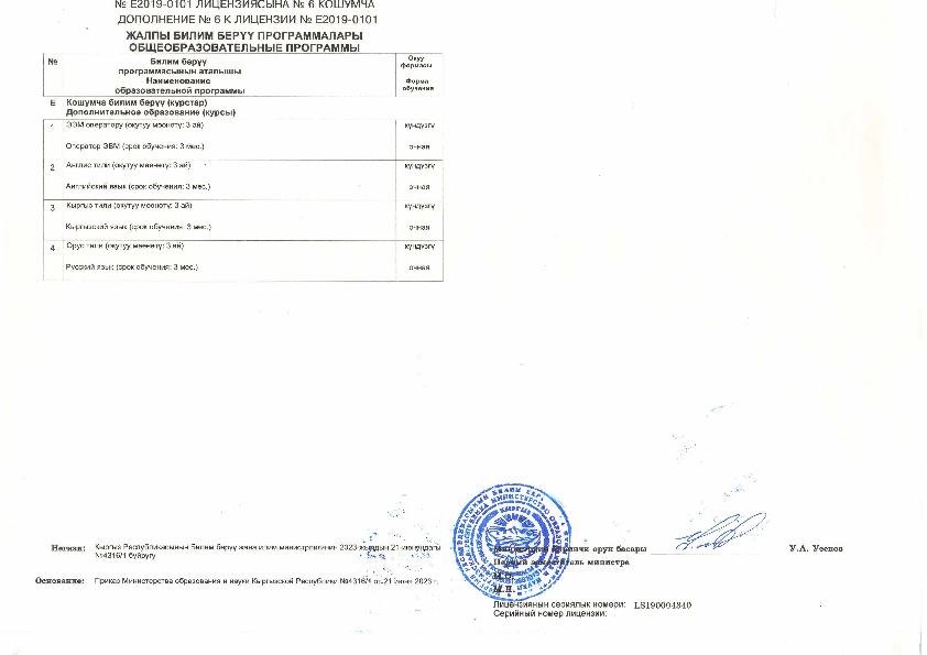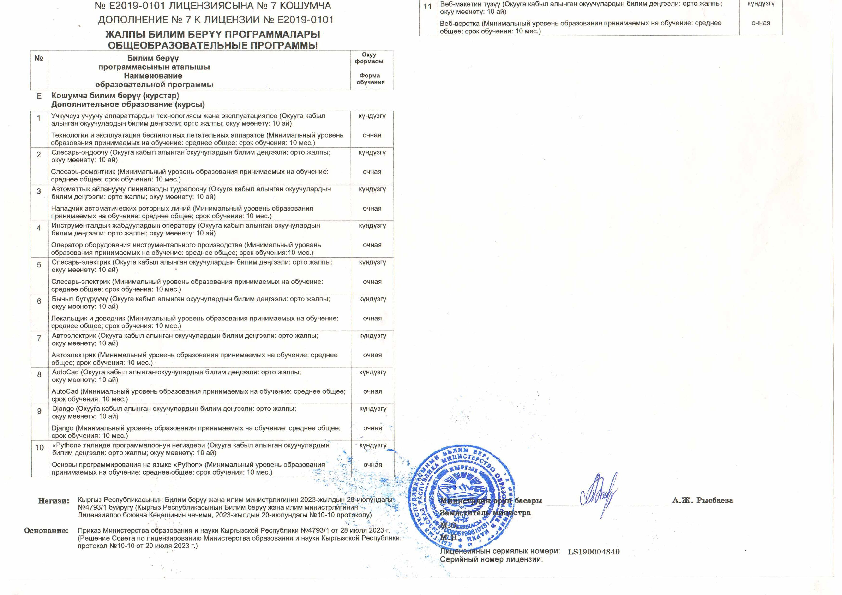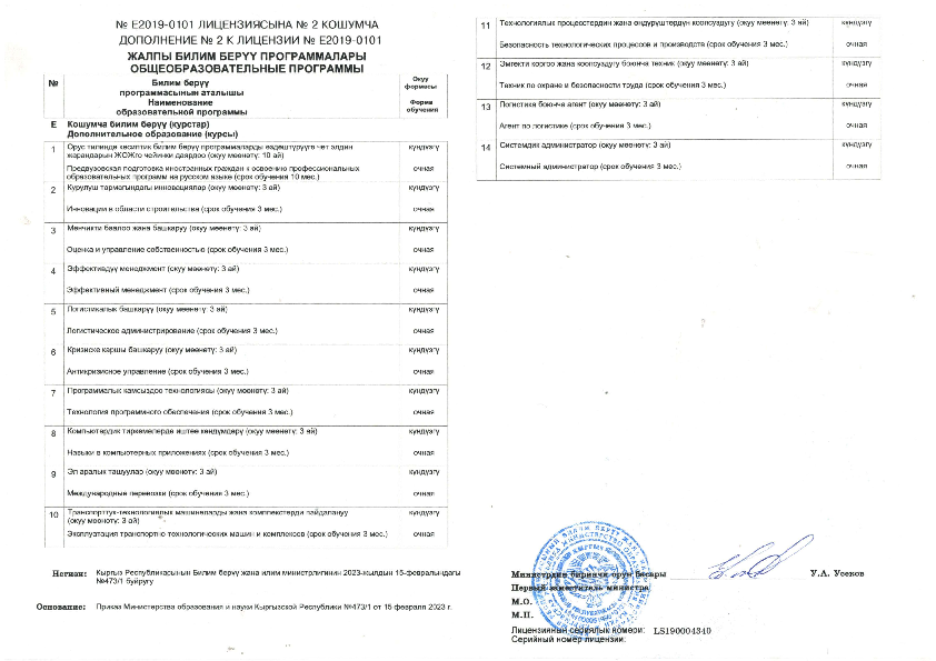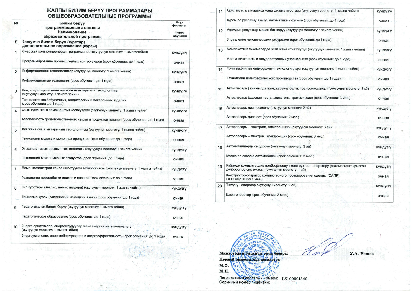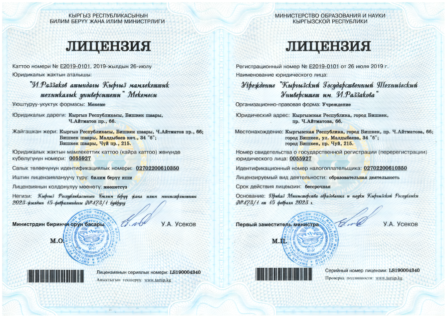 Лицензия Кыргызский государственный технический университет им. И. Раззакова
