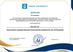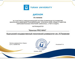 3-место – ТаалайбеккызыНурайым НИУ КЭУ им. М. Рыскулбекова
