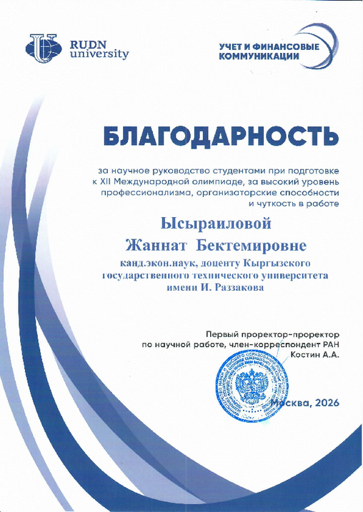 X- Республиканская межвузовская студенческая олимпиада по финансам, учету, анализу и аудиту, посвященная 70-летию КГТУ им. И.Раззакова