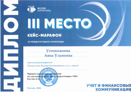 2-место –КулукееваКаныкей НИУ КЭУ им. М. Рыскулбекова