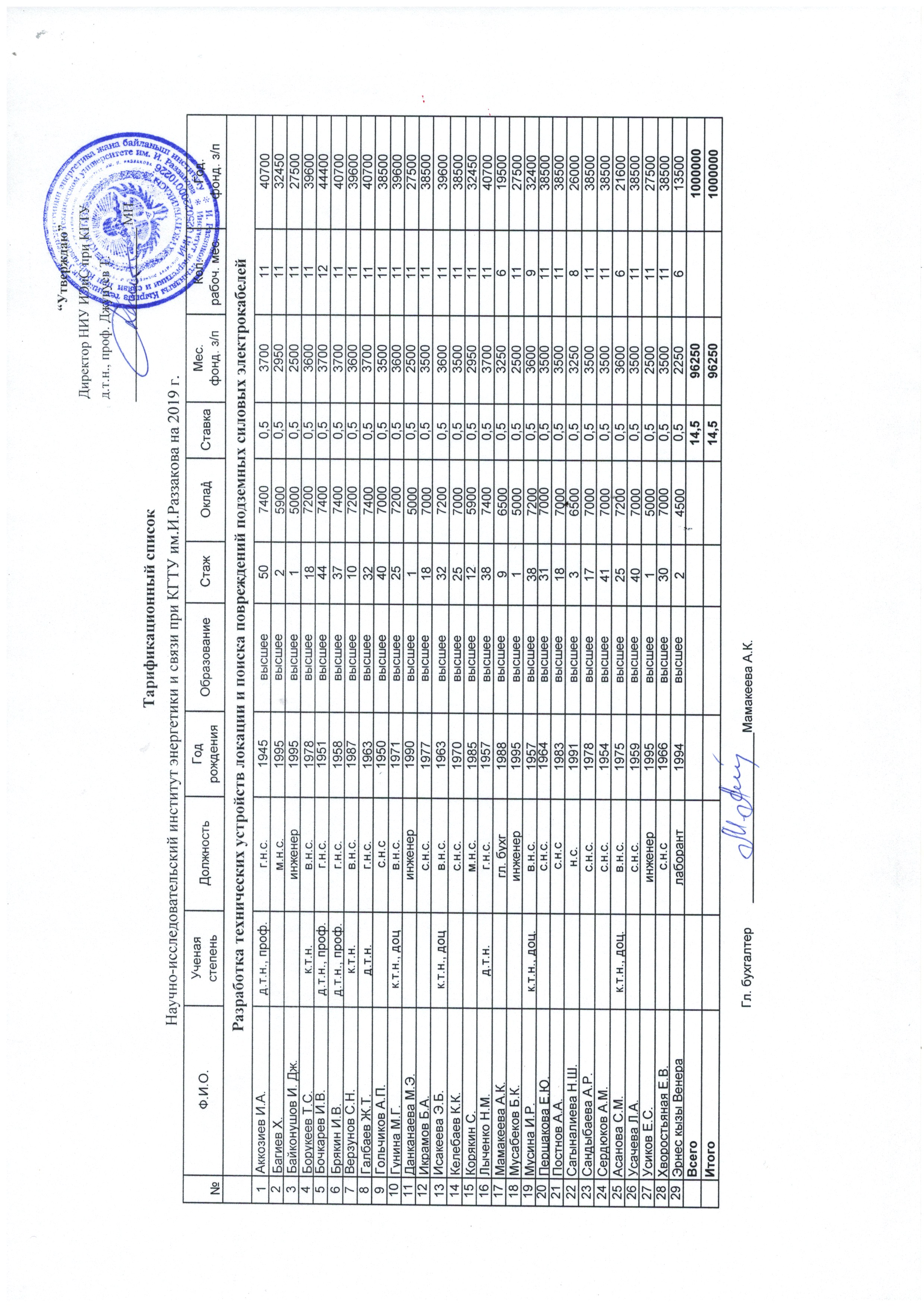 Тарификационный список за 2019 г.