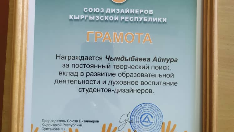 19 июня 2021 года успешно прошла презентация выставки членов Союза Дизайнеров КР в музее ИЗО им. Г. Айтиева и показ моделей одежды. Доцент кафедры ХПИ Чандыбаева А.М. вошла в состав членов Союза Дизайнеров КР и сама приняла активное участие в этой выставке.