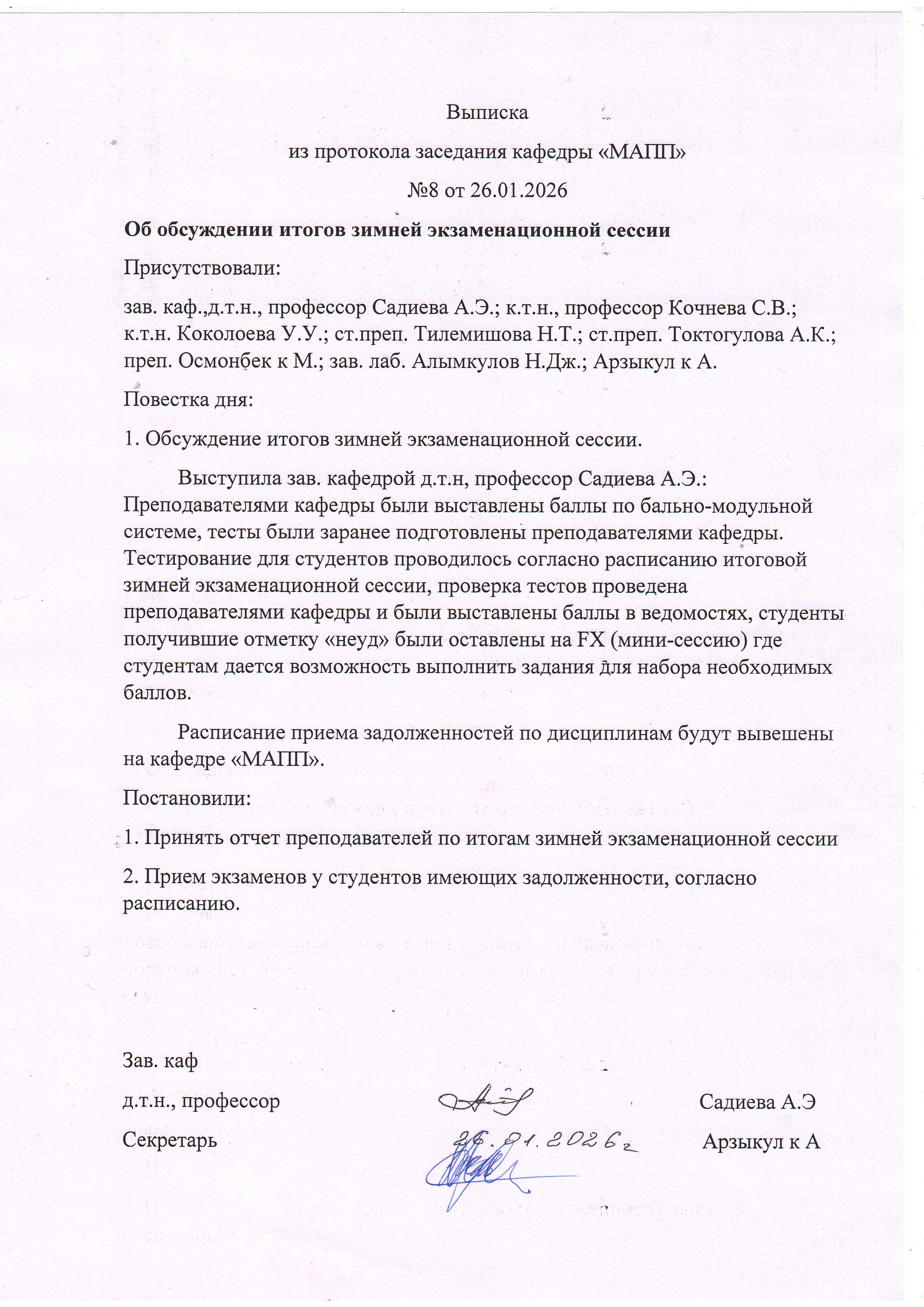 - НУСКАМА Кафедрада иштерди жана практикалык сабактарды өткөрүү боюнча