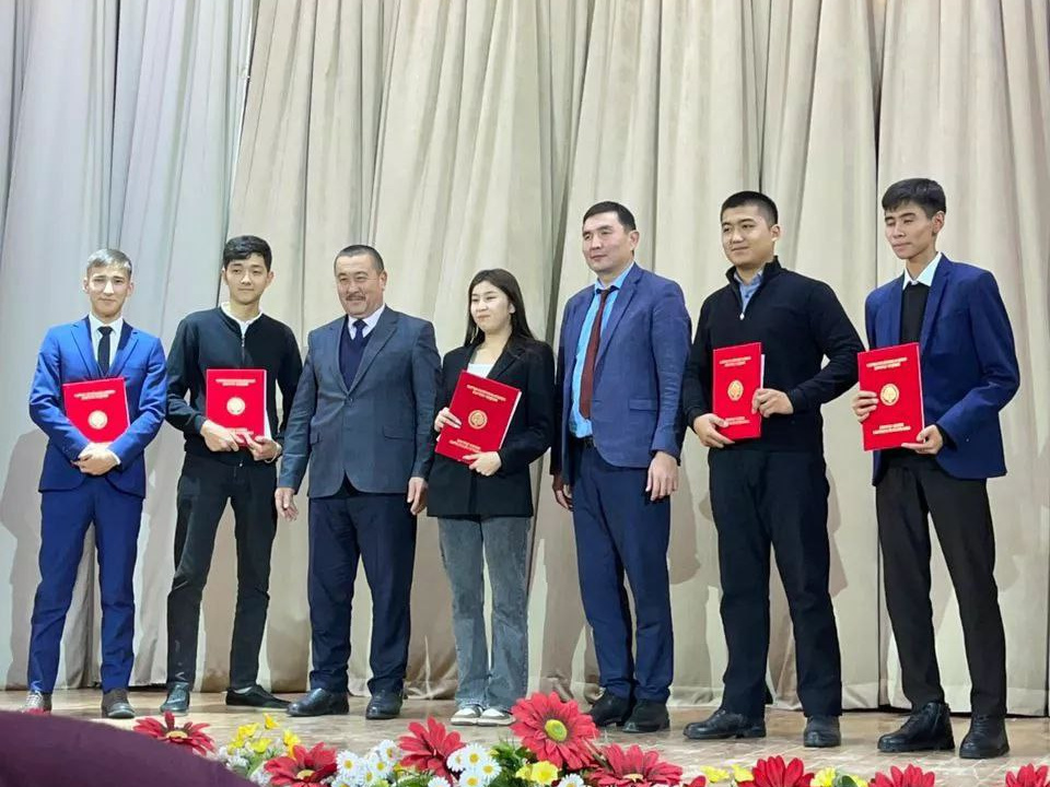 Вручение нашим лучшим студентам грамот от Жогорку Кенеша, а также студенты, удостоенные президентской стипендии.