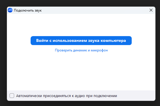 Before starting, the system will ask for permission to use your computer’s audio. You need to agree by clicking Join with Computer Audio, otherwise you’ll have to manually set up your microphone, speakers, and camera.