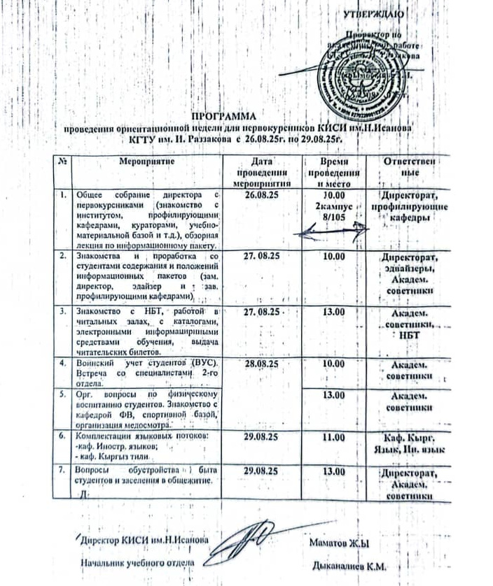 On August 26, 2025, a general meeting of first-year students was held. The purpose of the meeting was to introduce the institute, its specialized departments, curators, and the educational facilities.