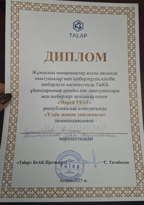 The college's creative teams took first place among teachers and masters of specialized disciplines. The collaboration "Ekho kyl kyyaka and Saimaluu-Tash" received first place.