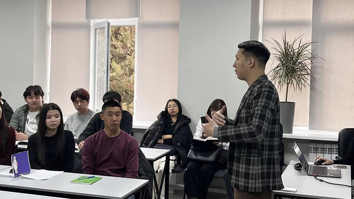 The event served as a continuation of the lecture material presented by Professor E.T. Imankulova, allowing students to consolidate theoretical knowledge through direct interaction with a practitioner. The speaker of the master class was Azamat Karybekov, an expert in team management and formation, and a practicing consultant in management and business consulting.