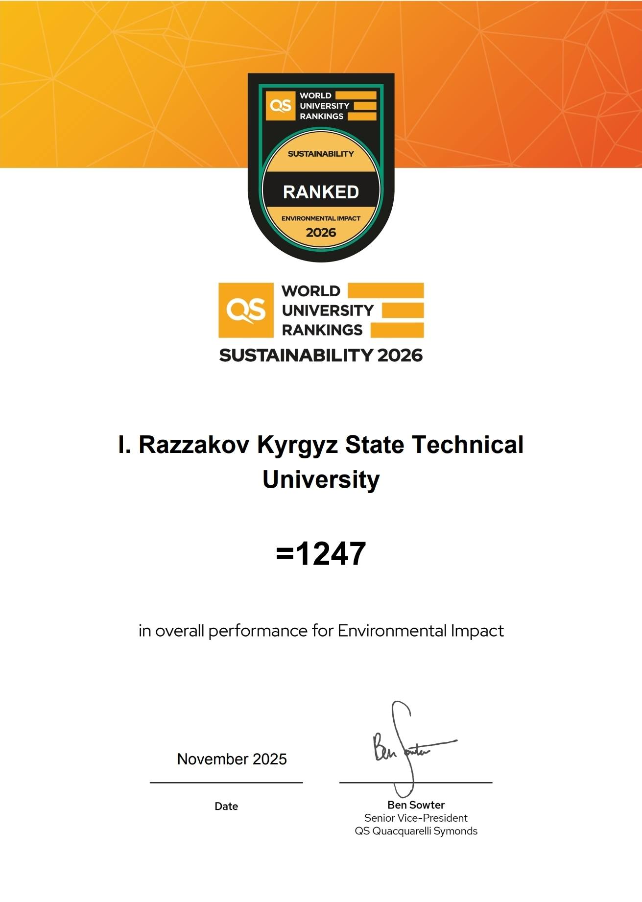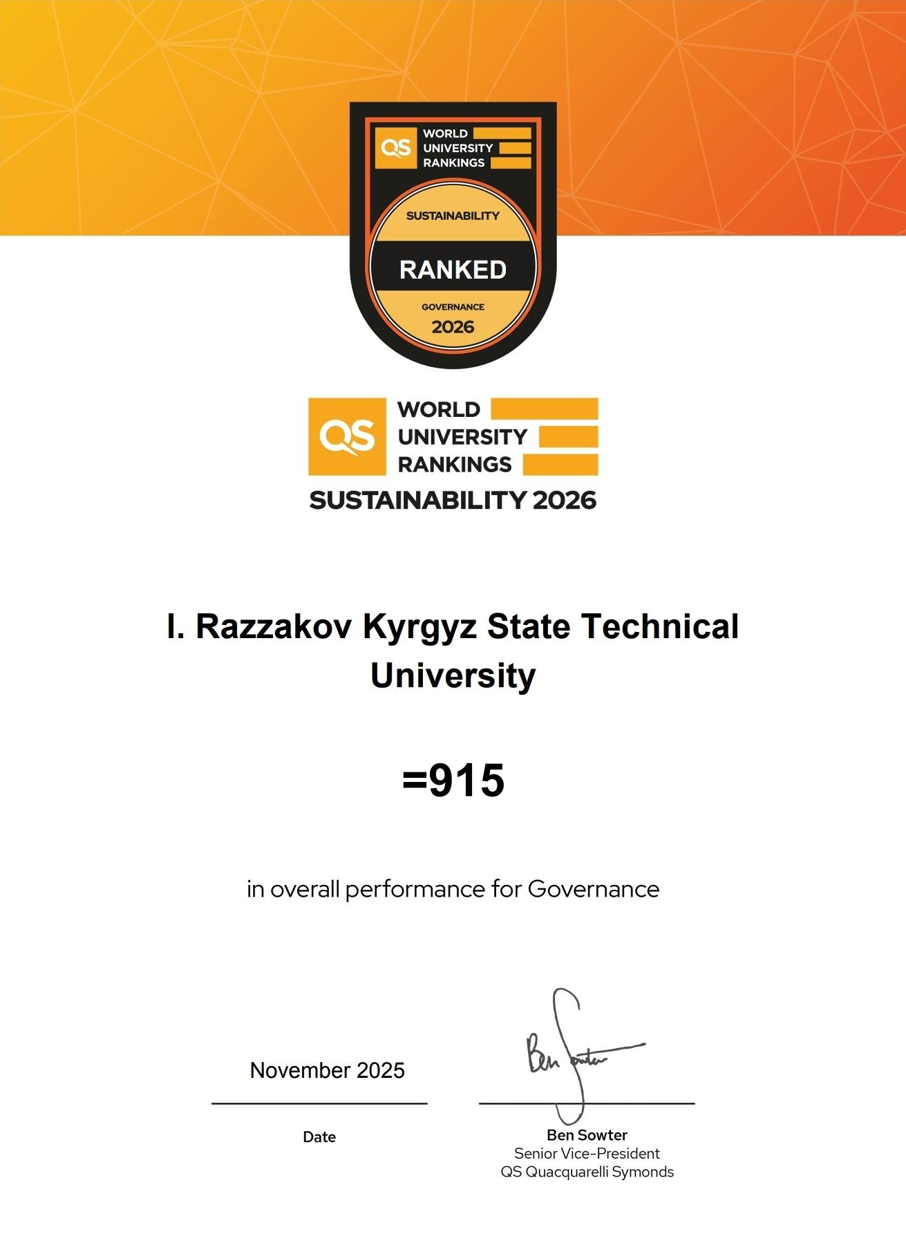 В этом глобальном исследовании Кыргызский государственный технический университет имени И. Раззакова занял 1501+ место в мире, 582 место в Азии и уверенно расположился на 2-м месте среди университетов Кыргызстана.