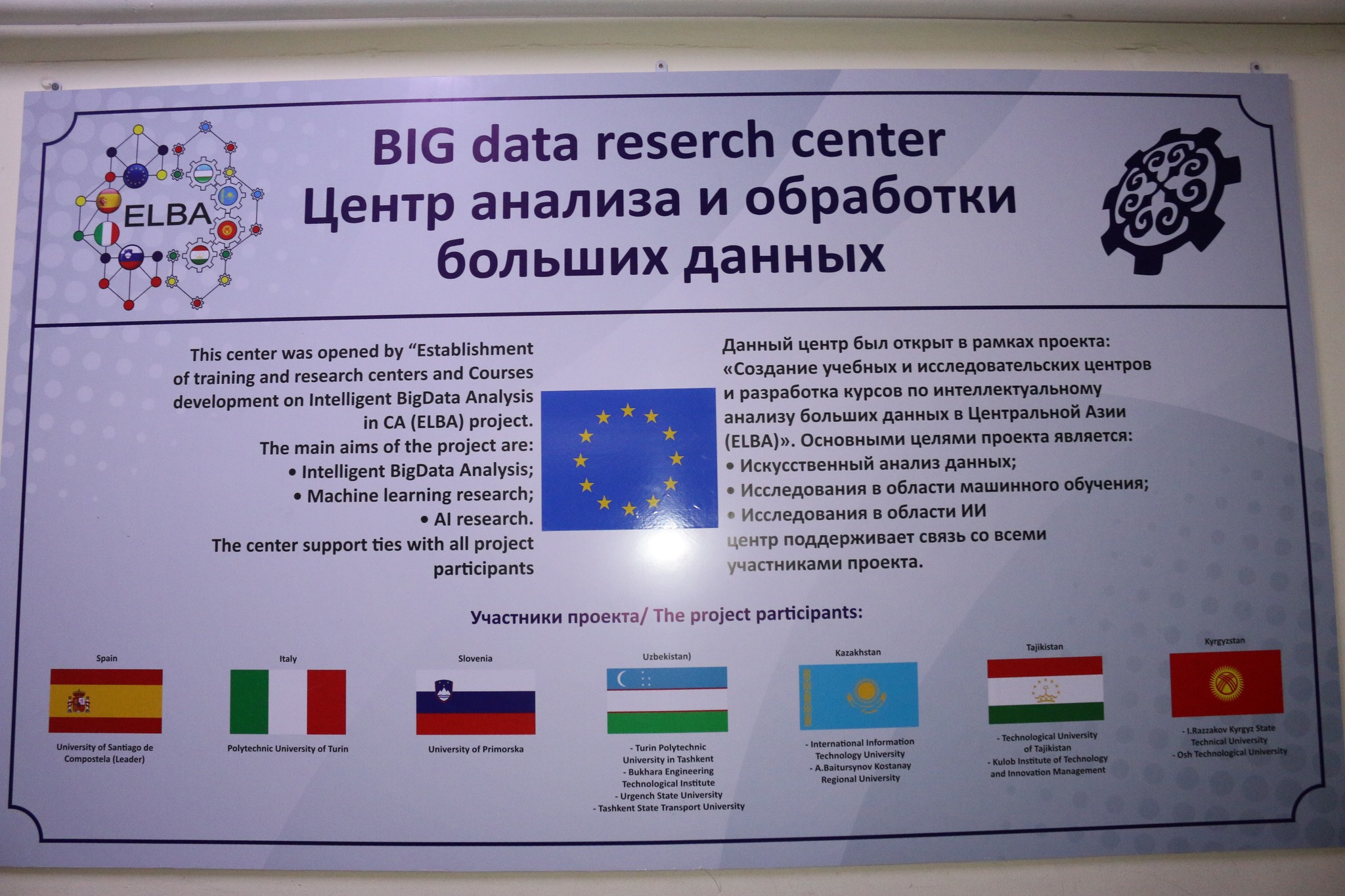 В 2019 году Кыргызским государственным техническим университетом им. И. Раззакова был выигран международный проект по программе Эразмус+ на тему «Создание учебных и исследовательских центров и разработка курсов по интеллектуальному анализу больших данных в Центральной Азии (ELBA)». Координатором проекта является Университет Сантьяго дe Компостела (Испания).