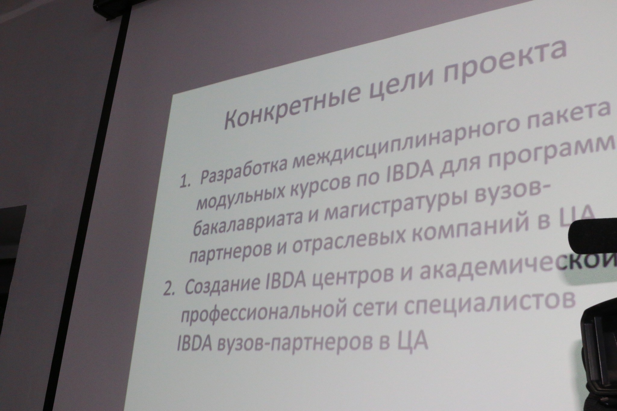 В ходе проекта в университете будут разработан междисциплинарный пакет модульных курсов по ИАБД для программ бакалавриата и магистратуры, созданы учебно-исследовательский центр на общую сумму 23 512 евро и академическая и профессиональная сеть специалистов ИАБД среди партнерских ВУЗов Центральной Азии. Консорциум проекта состоит из партнеров из 3 университетов ЕС и 10 стран Центральной Азии и 11 партнеров из сферы промышленности и образования.