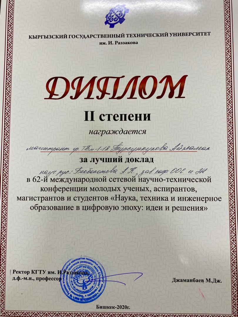 Омуров Ж.М. Аалымуханбет у. Ж. Сатыбалдиева Дж.К. Проект «ECO- Talk». «Применение отходов в качестве сорбента для очистки сточных вод картофельного производства» c финансированием 10.000 $.