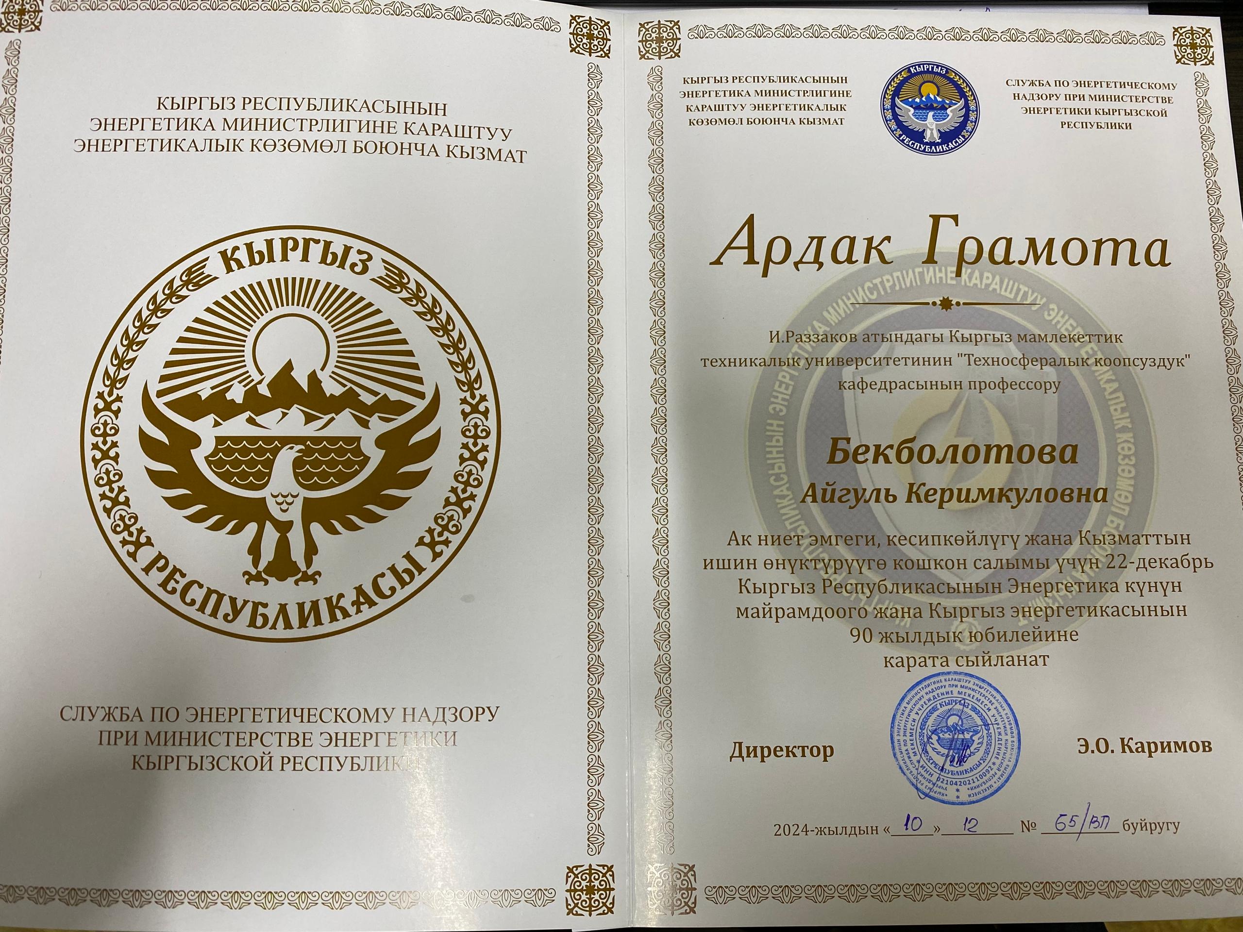 - Умановой Н.Д. "Суусамыр өрөөнүндөгү жайыттардагы “Алтыгана” бадалдарын геоэкологиялык баалоо жана алар менен күрөшүү технологиялары”