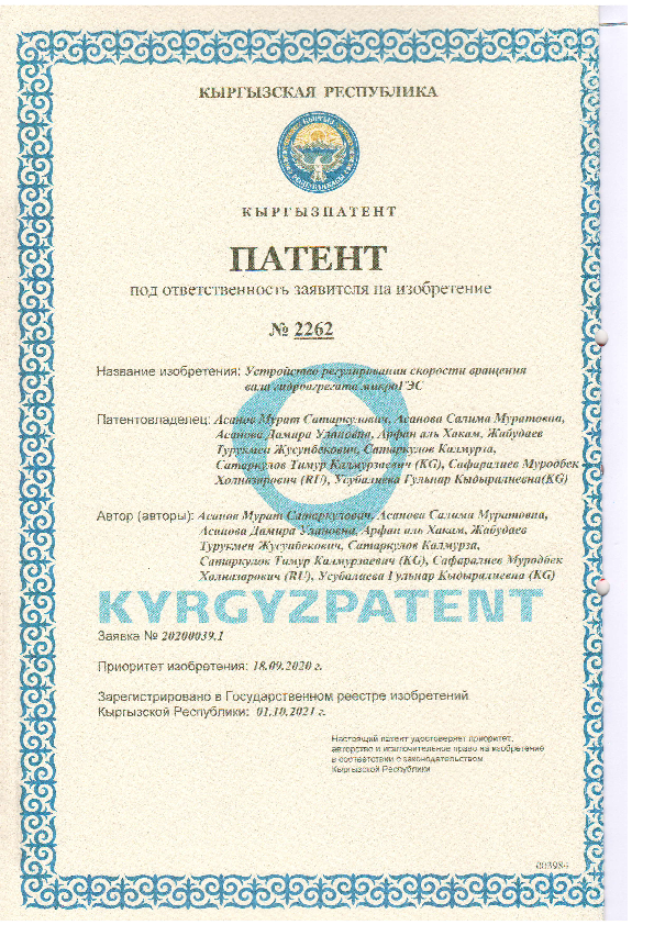- «Индукционный нагреватель жидкости», 30 июля 2004 г, патент № 683.