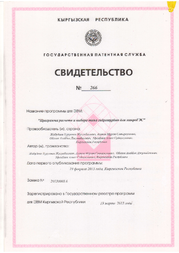 - «Резистивный нагреватель», 30 июня 2004 г, патент № 677.
