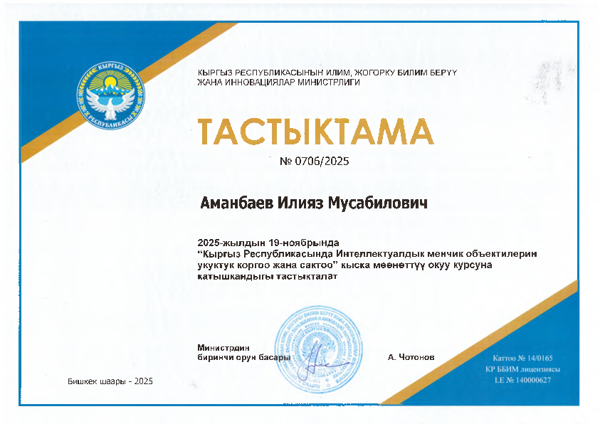 Образование: Аманбаев Ильяз Мусабилович в 1974 году окончил Энергетический факультет Фрунзенского политехнического