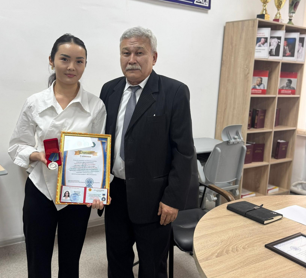 В международном конкурсе «Лучший студент тюркских народов», организованном Национальным научно-исследовательским центром «Bilim-оrkenieti» совместно с Республиканским инновационным центром «Жана Казахстан» (г. Астана, Казахстан), высокую международную награду получила студентка группы Мц-1-22 специальности «Металлургия цветных металлов» Маратова Чачыкей Маратовна.