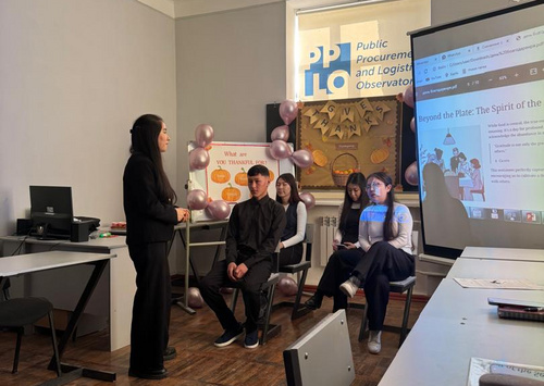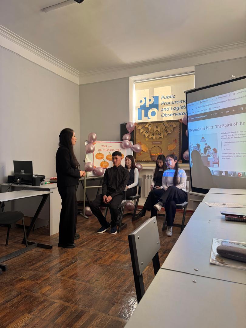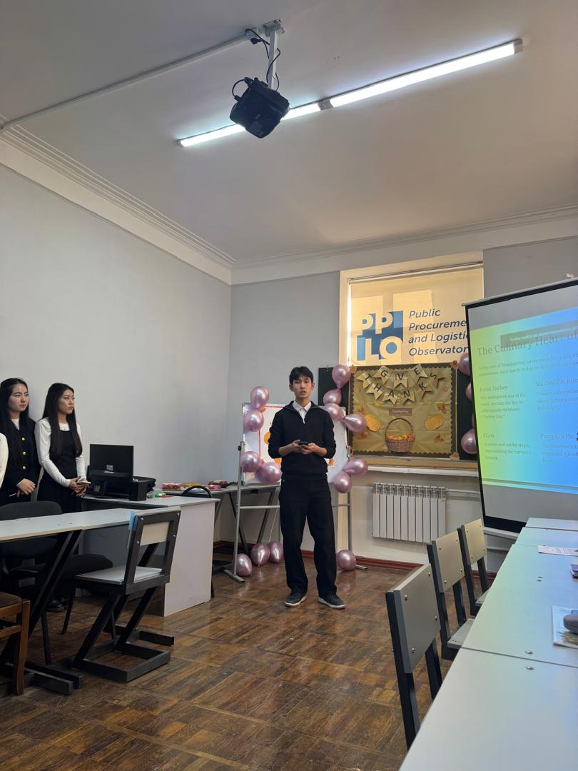 2 декабря в рамках внеаудиторной работы по английскому языку было проведено культурно-познавательное мероприятие, посвящённое американскому празднику День благодарения. Целью мероприятия было расширение кругозора студентов, развитие их коммуникативных навыков на английском языке, а также знакомство с традициями и культурными особенностями англоязычных стран.