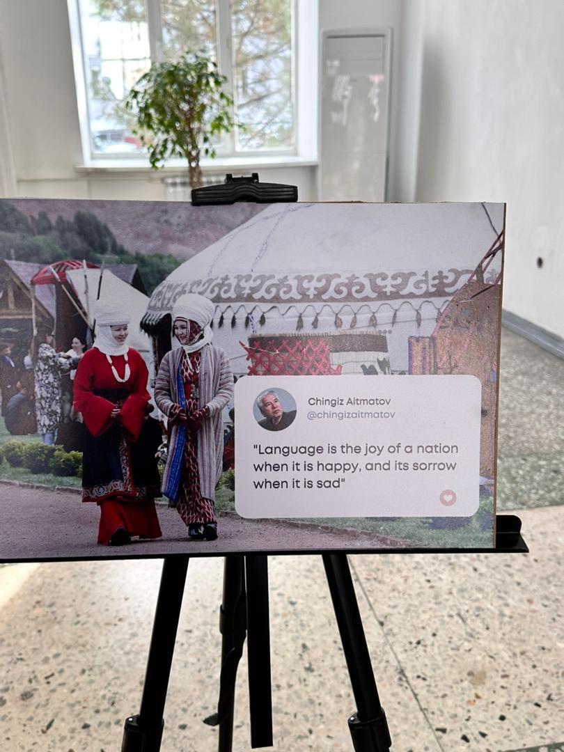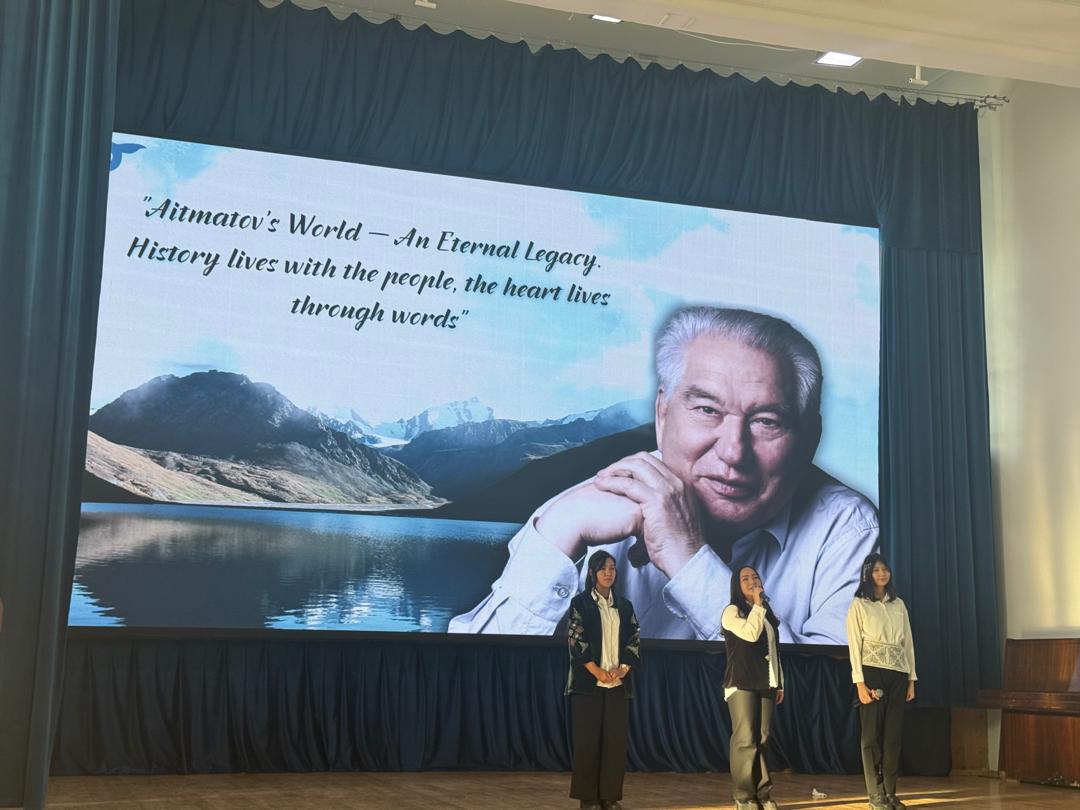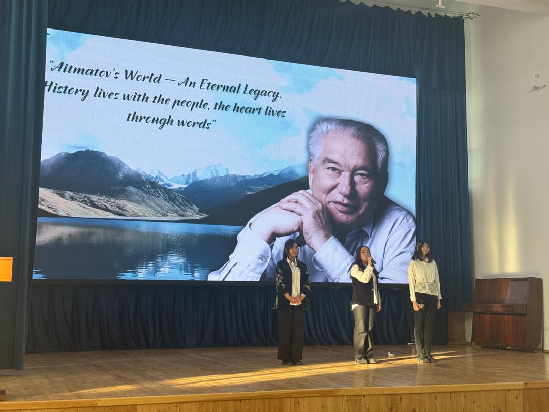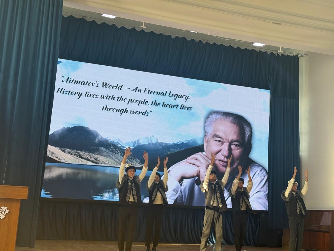 В стенах нашего университета преподавателями кафедры Иностранные языки совместно со студентами 1-курса ИИТ, ИЭТ, МВШЛ, ТИ, ЭИ изучающие иностранный язык 11-декабря было проведено мероприятие «The World of Aitmatov – Eternal Legacy» посвященное творчеству великого кыргызского и мирового писателя, классика XX–XXI веков, Народного писателя Кыргызстана, Героя Кыргызской Республики - Чингиза Торекуловича Айтматова.