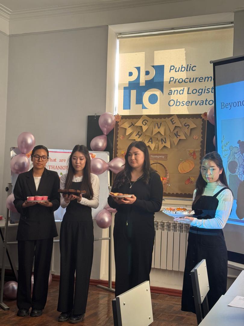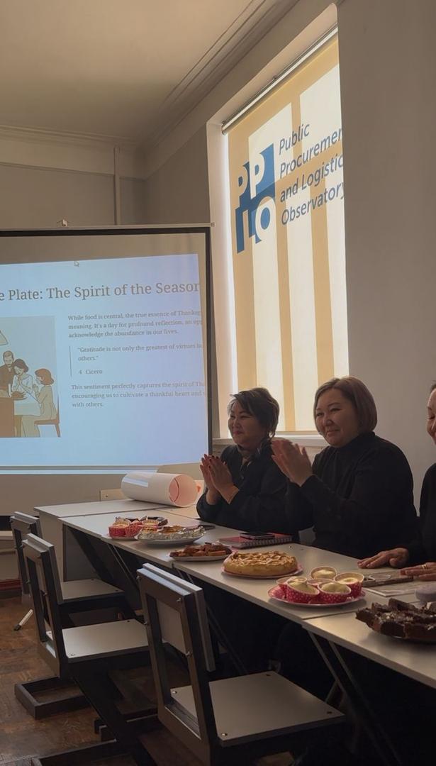 А так же было знакомство с национальными блюдами — участники представили блюда, которые традиционно подаются на День благодарения (панкейк, тыквенный пирог и др.), а также рассказали об их значении.