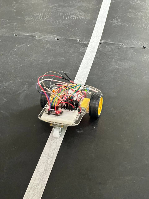 Проект «Autonomes Fahrzeug mit Arduino Nano» заключался в создании небольшого автономного транспортного средства на базе Arduino Nano. Модель ориентировалась по поверхности с помощью оптических датчиков, энкодеров и DC-моторов, двигаясь по линии за счёт анализа отражённого света. Программа, написанная на C++ в Arduino IDE, обрабатывала сигналы сенсоров и корректировала скорость колёс, удерживая платформу на траектории. Работа над проектом позволила студентам укрепить навыки программирования, схемотехники, тестирования и командной работы.