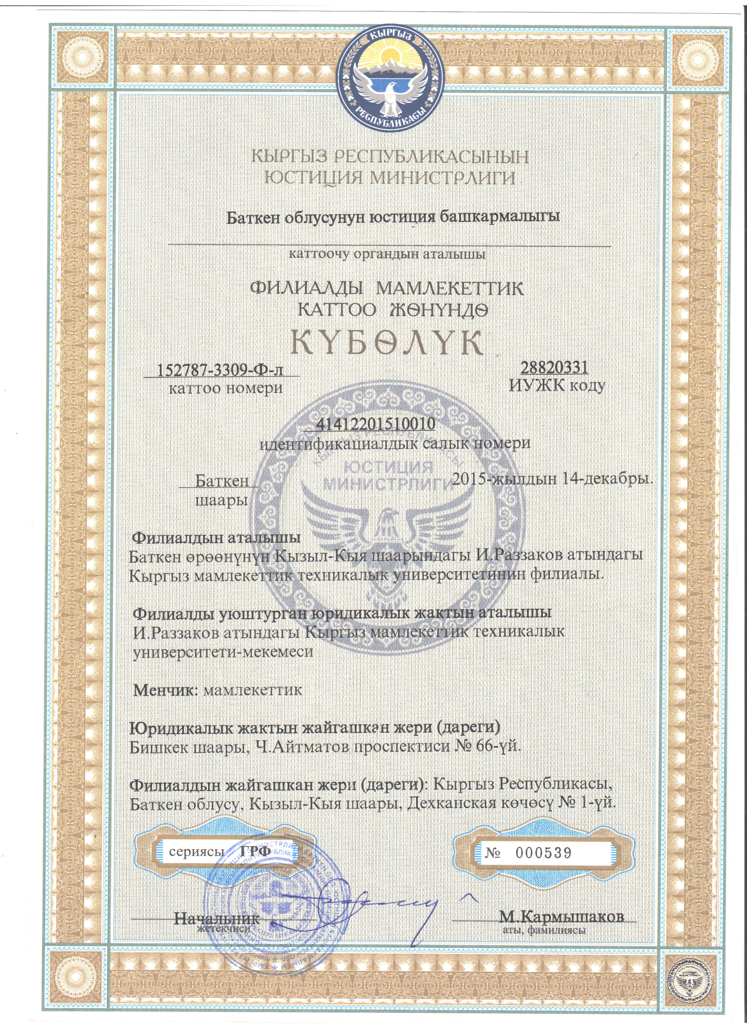 И.Раззаков атындагы КМТУнун Кызыл-Кыя шаарындагы филиалы
