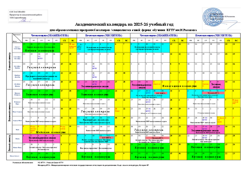 2025-2026-окуу жылына карата күндүзгү, сырттан окуу жана магистратура формалары үчүн академиялык календары.
