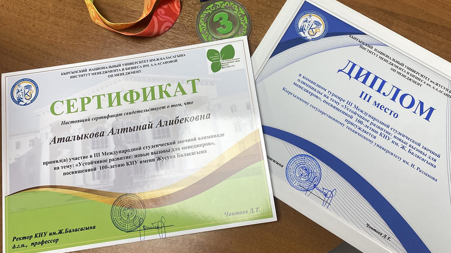 2025-жылдын 7-мартында Ж. Баласагын атындагы Кыргыз улуттук университетинде КНУнун 100 жылдыгына арналган «Туруктуу өнүгүү: менеджерлер үчүн жаңы чакырыктар» аттуу III Эл аралык студенттик сырттан олимпиада өткөрүлдү. Иш-чарага Кыргызстан жана Казакстандын алдыңкы жогорку окуу жайларынын студенттери катышты.