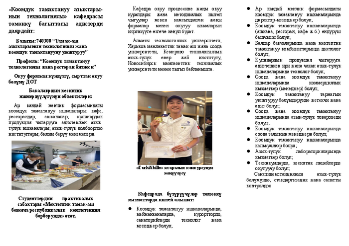 740300-продукцияны өндүрүү технологиясы жана коомдук тамактанууну уюштуруу.