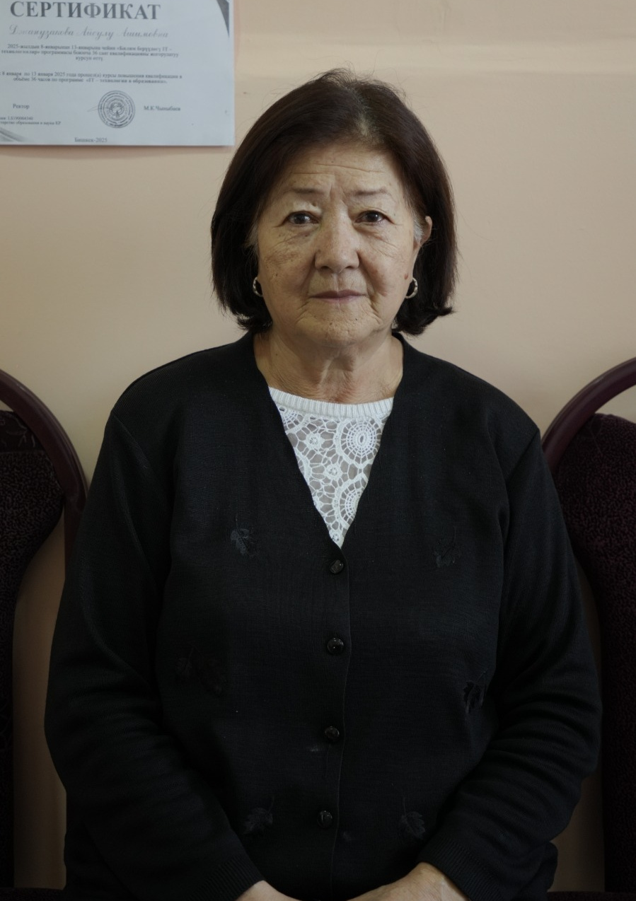 Эл агартуунун отличниги, педагогика илимдеринин кандидаты, доцент, КМТУнун профессору.