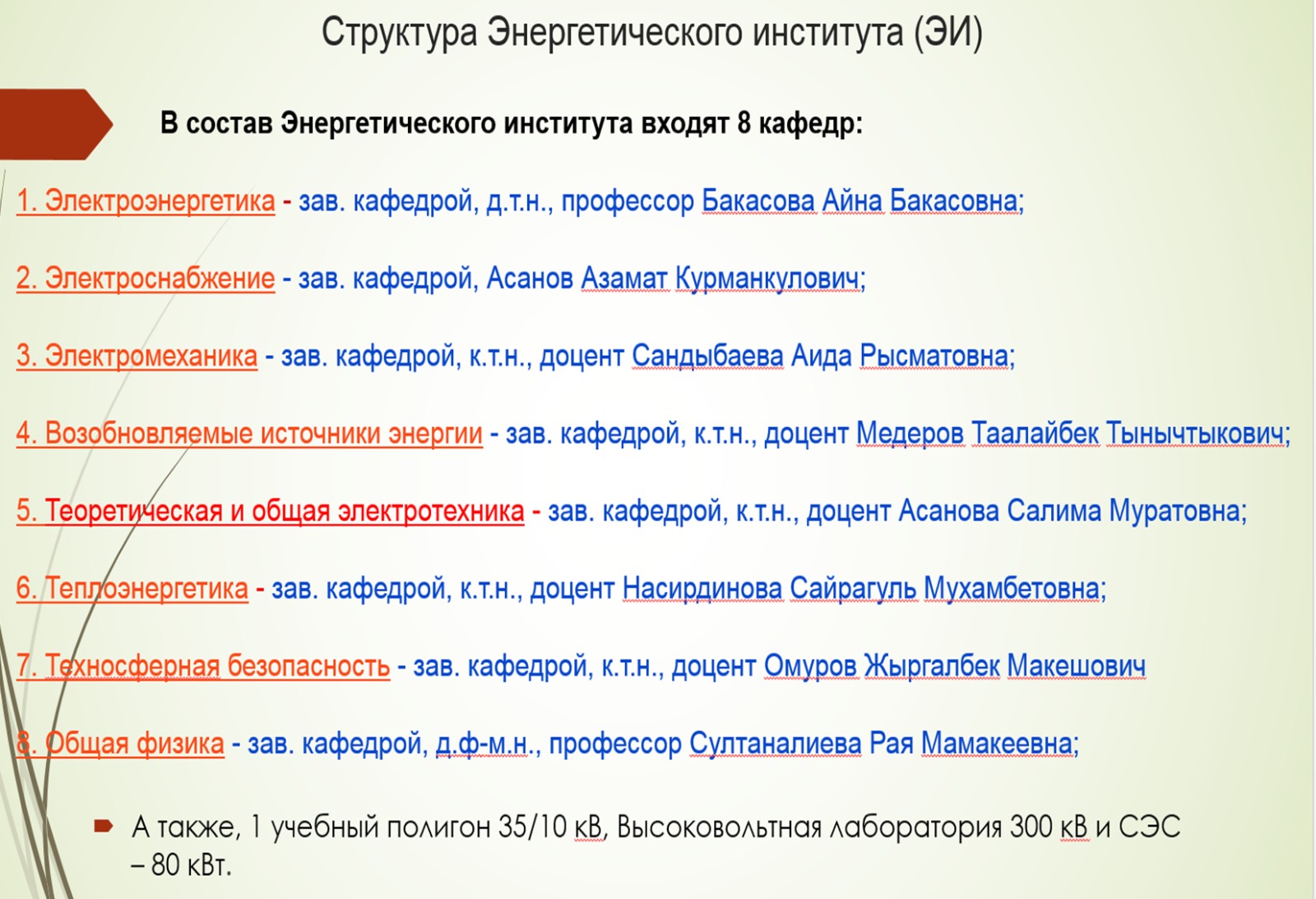 Институттар жана кафедралар
