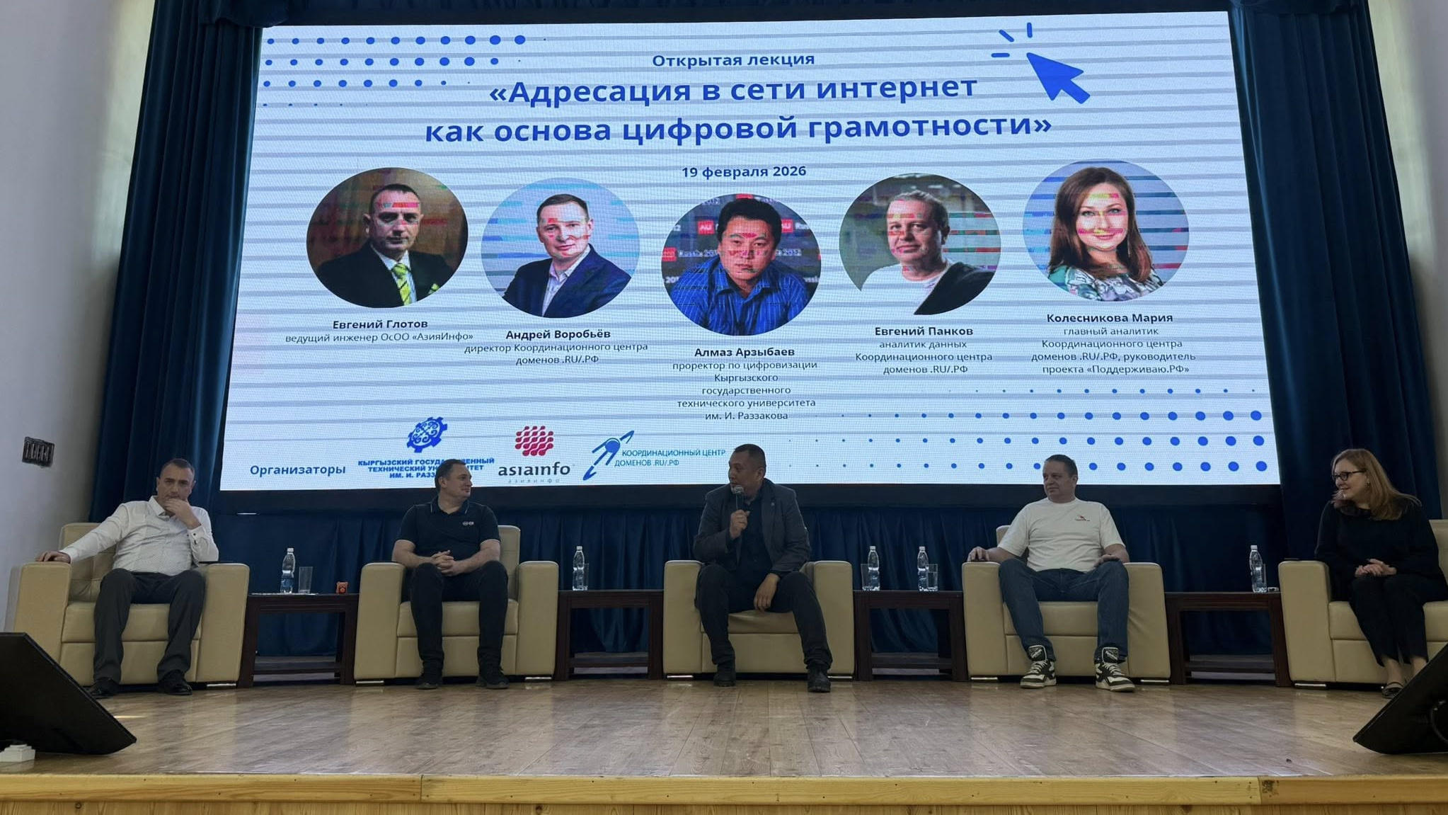В числе спикеров выступили директор Координационного центра доменов .RU/.РФ Андрей Воробьев, главный аналитик Центра Мария Колесникова, аналитик данных Евгений Панков, а также ведущий инженер ОсОО «АзияИнфо» Евгений Глотов.