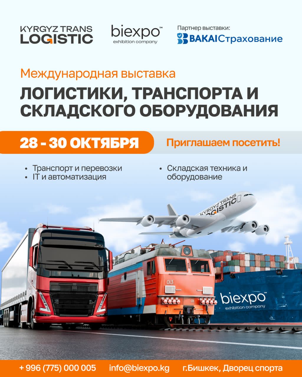 28-30 октября 2025 года в г. Бишкек во Дворце Спорта состоится Международная выставка «Логистики , транспорта и складского оборудования в Кыргызской Республике», которая организуется выставочной компанией “Biexpo”. Приглашаем Вас посетить .