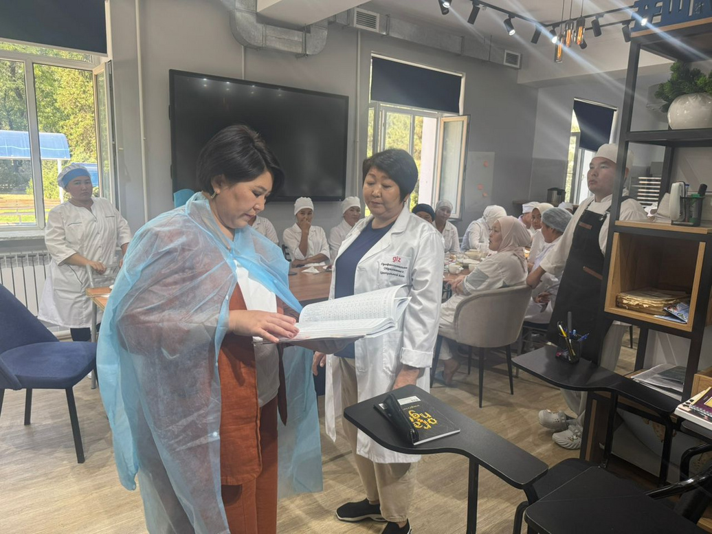 Тренеры-инженеры-технологи в области общественного питания Мунара Азисова и Мээрим Абдрахимова провели онлайн обучение теоретических материалов через специально разработанную платформу для поваров, а затем практические занятия были продолжены в Республиканском центре компетенций (РЦК).