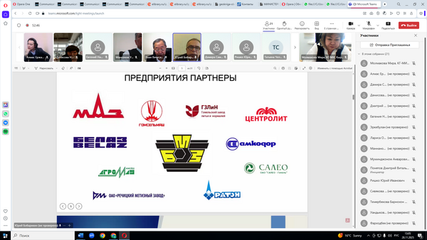 28 ноября 2025 года сотрудники Кыргызского горно-металлургического института им.академика У. Асаналиева — д.т.н., профессор Самбаева Д.А., к.т.н., доцент Молдобаев Э.С., к.т.н., доцент Молмакова М.С. — приняли участие в ежегодном заседании Общественного совета Университета науки и технологий МИСИС. Мероприятие прошло в онлайн-формате и было организовано совместно с Ассоциацией технических вузов стран СНГ. В заседании участвовали представители образовательных и научных организаций из России, Кыргызстана, Казахстана, Узбекистана и Белоруссии. Основное внимание было уделено вопросам развития горно-металлургического комплекса, цифровой трансформации отрасли и расширению межгосударственного научного сотрудничества. От КГ-МИ с научным докладом «Инерциальные системы навигации для безопасного производства» выступила д.т.н., профессор Самбаева Д.А. Она отметила важность внедрения современных навигационных технологий для повышения уровня промышленной безопасности и оптимизации производственных процессов. КГ-МИ продолжит развивать международное сотрудничество, участвовать в профессиональных экспертных площадках и вносить вклад в подготовку высококвалифицированных инженерных кадров для горно-металлургической отрасли.