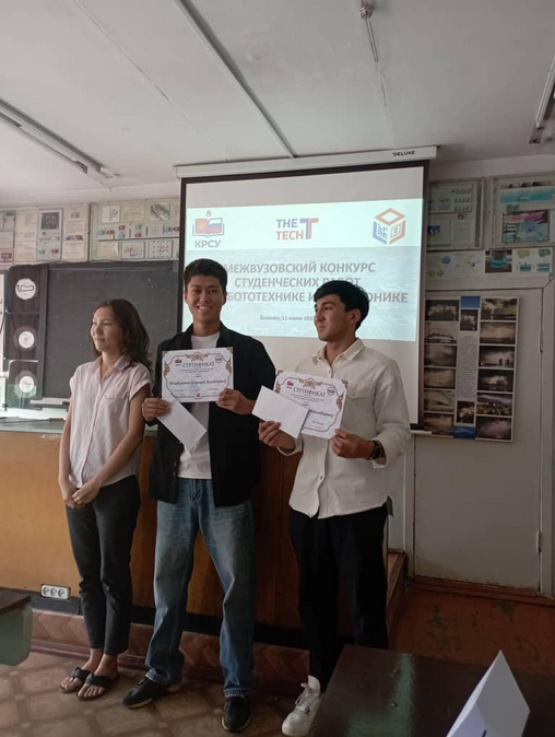 Участие студентов кафедры в межвузовском конкурсе студенческих работ по робототехнике и электронике. КРСУ. Бишкек. 2025 г.