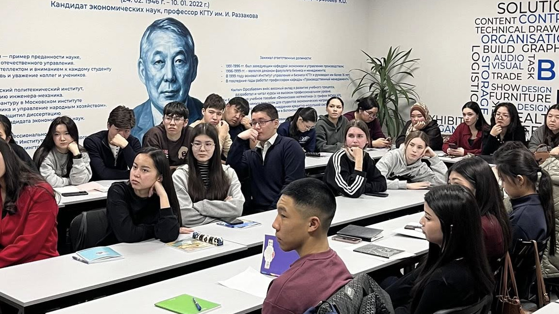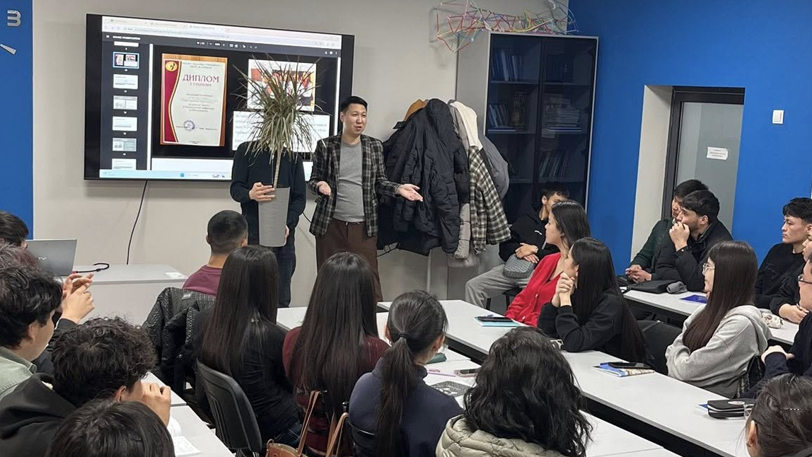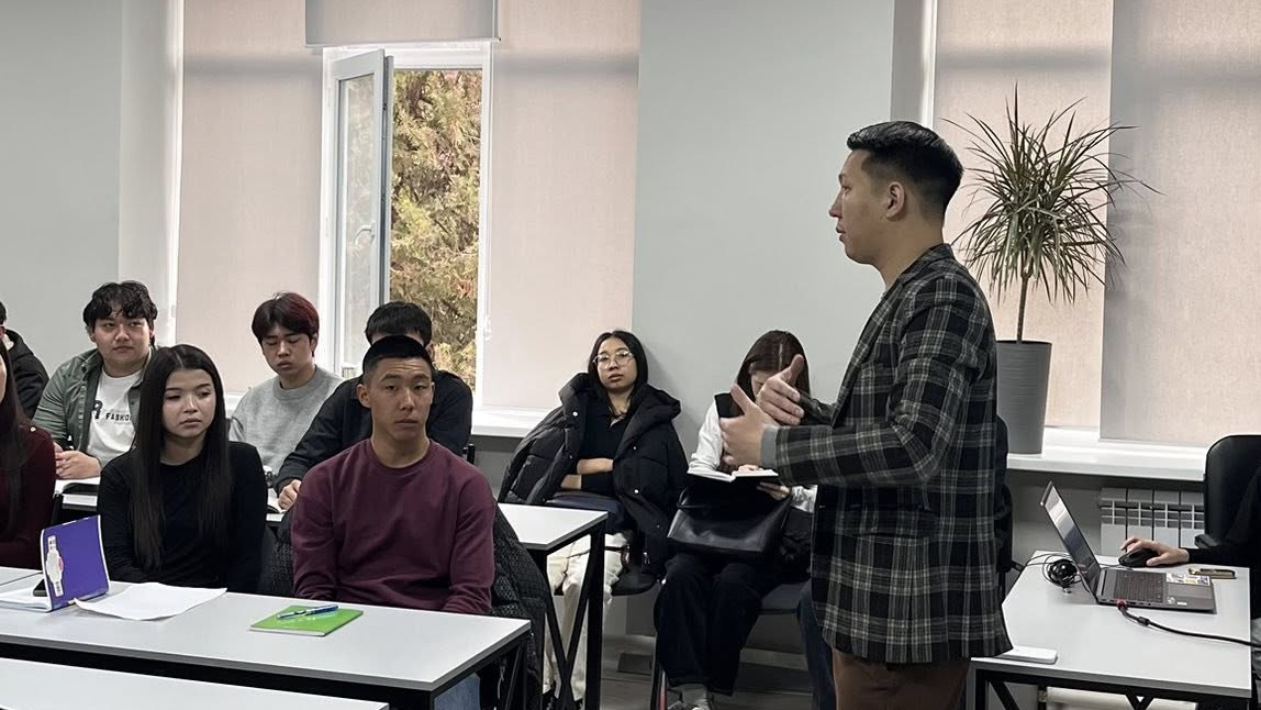 Директор филиала Таласской области провёл для студентов практическое занятие, рассказав о производственных процессах, финансовых аспектах бизнеса и карьерных перспективах в сфере менеджмента. Студентов особенно заинтересовал вопрос, какие качества необходимы для успешной карьеры в бизнесе.