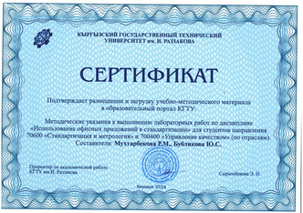 План работы КГТУ им.И.Раззакова