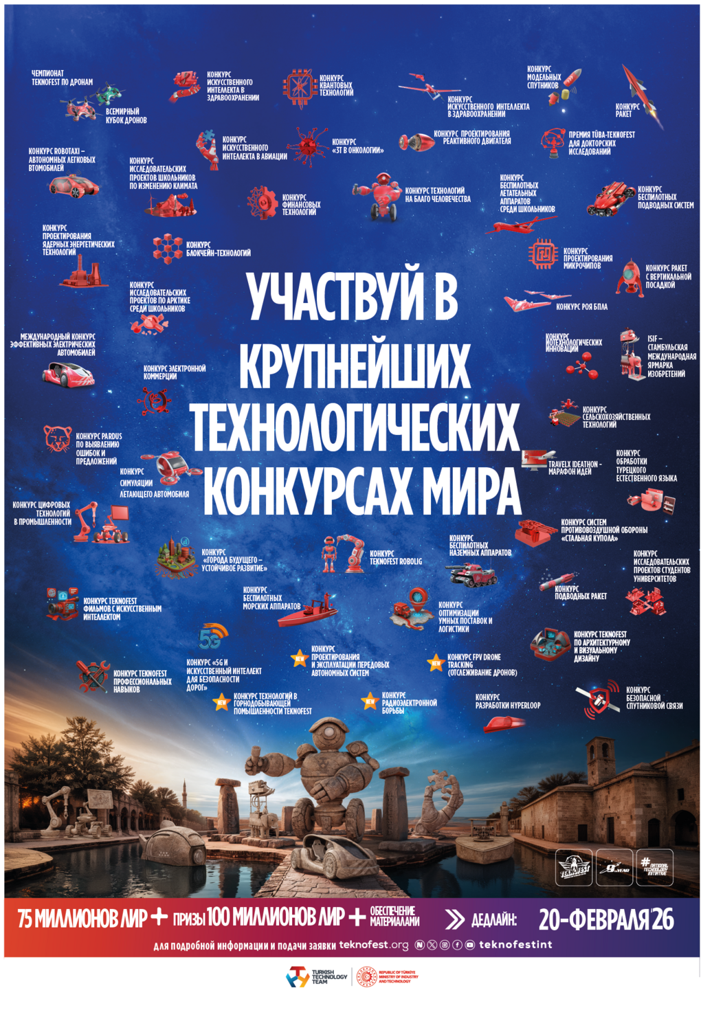 TEKNOFEST вновь проводит крупнейшие в мире технологические конкурсы с призами. В 2026 году будет организовано 52 конкурса и 127 подкатегорий. Приём заявок открыт до 20 февраля.