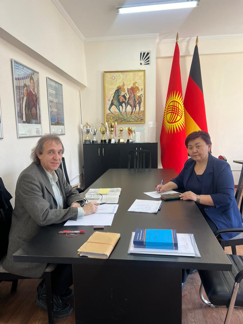 5 - марта 2025 г. директор офиса ДААД в Бишкеке, регионального представительста в Центральной Азии доктор госпожа Гизела Циммерманн посетила Кыргызско-германский технический институт КГТУ им. И. Раззакова. Это первый визит вначале ее срока трудовой деятельности в Бишкеке. В рамках визита состоялась короткая встреча с преподавателями Центра немецкого языка. Во время встречи обсуждались вопросы нынешнего состояния преподавания немецкого языка в школах и Вузах.