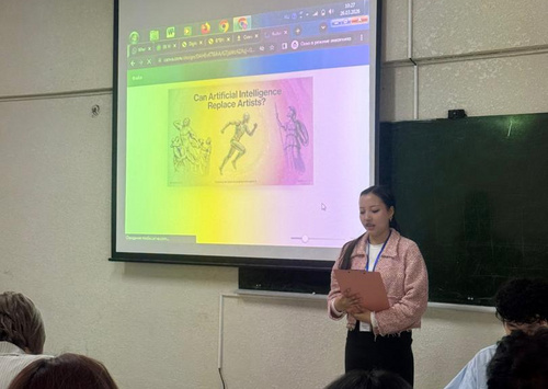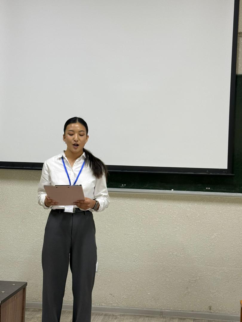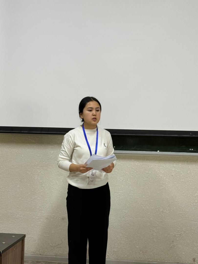 Еще одной интересной частью мероприятия стал доклад Кенчибековой Шахиды о 12 особенностях эпоса «Манас». Она подробно проанализировала уникальные особенности эпоса, его место в мировой культуре и связь с идентичностью кыргызского народа, предоставив студентам новые знания. Затем Бекенова Барчынай и Самарбекова Акинай провели сессию вопросов и ответов, где для закрепления в памяти эпоса и исторических материалов были заданы различные вопросы. Студенты активно участвовали, делились своими мнениями, в ходе сессии возникло много интересных дискуссий.