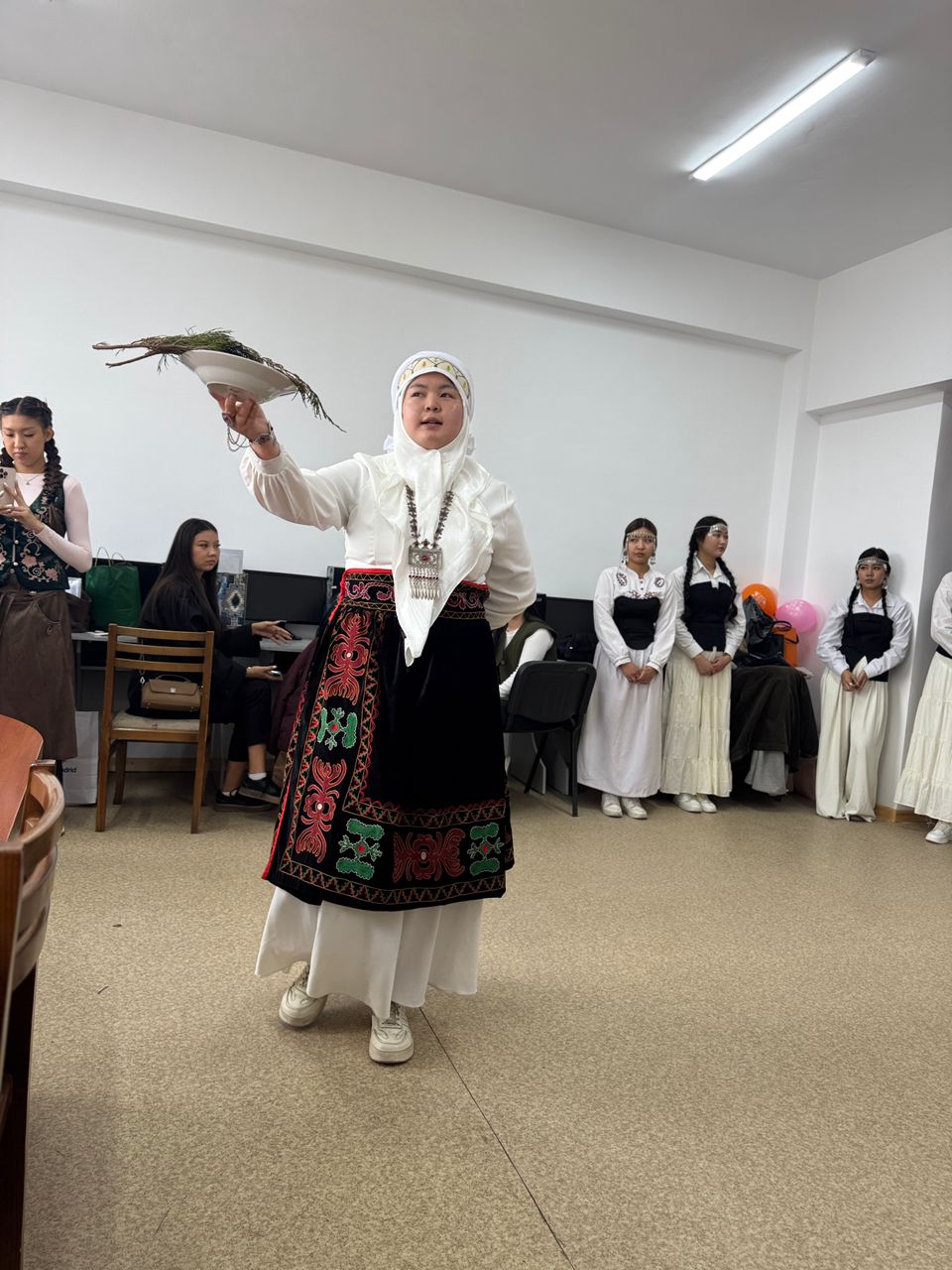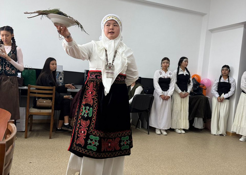 Особое внимание было уделено древнему обряду очищения — аластоо. Студенты продемонстрировали традиционный ритуал, сопровождаемый благопожеланиями о мире, достатке и процветании.